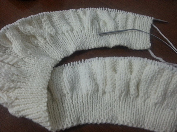 Для рукава набрать 40 петель, вязать резинкой 1х1 3,5 см. Далее делать расширение до 66 петель. Длина рукава 39 см. Прибавки соответственно где-то каждые 2,5 см.