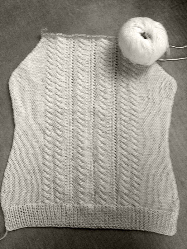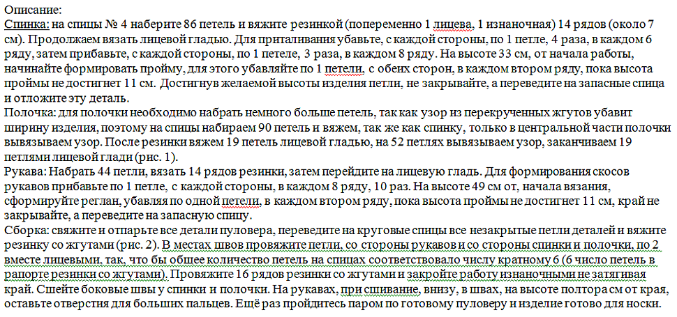 На 42 размер (обхват груди 88 см) понадобится 350 грамм итальянской пряжи «Martine» от «BBB filati», спицы № 4. Нитка очень высокого качество, поэтому вязать приятно и затруднений вызывать не должна. Вообще, сам пуловер вяжется очень просто, особое внимание стоит уделить небольшому узору на полочке.
