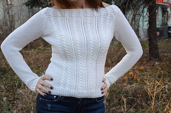 Даже в холодное время года можно порадовать себя новыми решениями в привычных вещах. Например, связать свитер из хлопка или шелковой нити, или шерстяной топ с открытыми плечами. В этом мастер-классе я расскажу, как связать нежную-белоснежную вещицу для миниатюрной девушки из чистошерстяной пряжи с абсолютно открытыми плечами. Такой пуловер будет и теплым и весьма сексуально-привлекательным.