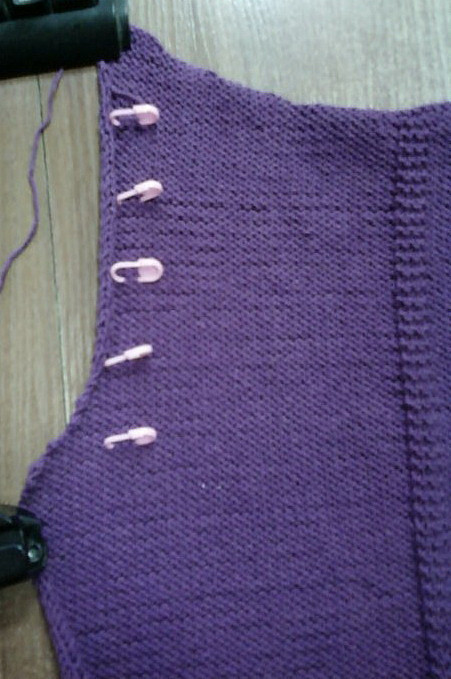 Вязать 40 рядов (13 -14см). Ольга для удобства помечала маркировщиками петель каждые 10 рядов вот таким образом